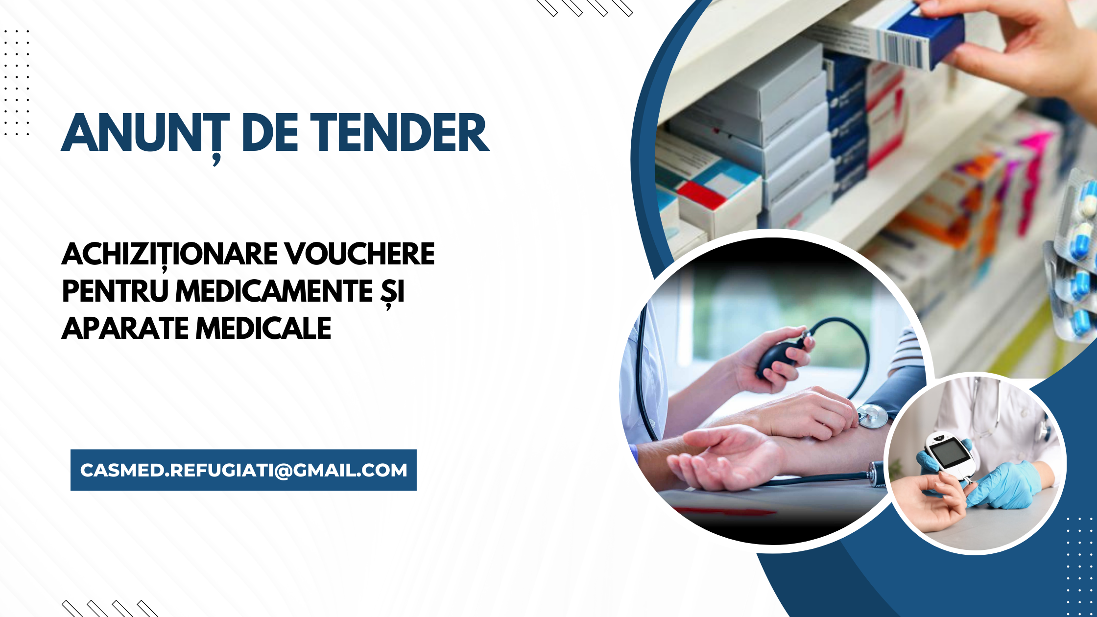 Asociația Obștească „CASMED” din mun. Bălți, anunță concurs de tender pentru achiziționarea unui lot de 250 vouchere, cu valoarea nominală de 1000 (una mie) MDL fiecare, pentru medicamente și aparate medicale (tensiomentru, termometru, glucometru, teste, produse de ortopedie, etc)