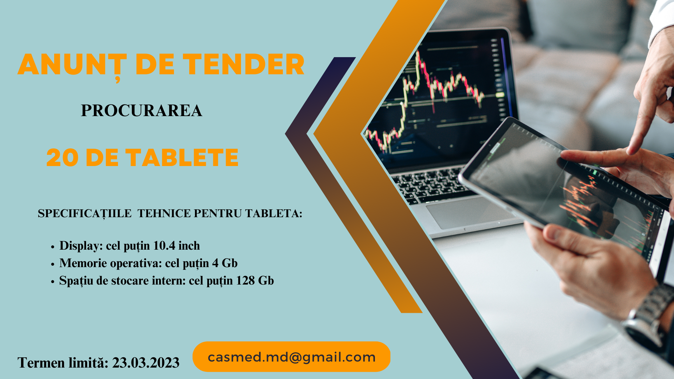 Invităm companiile specializate din Republica Moldova să participe la tenderul pentru procurarea a 20 de tablete în baza următoarelor cerințe: