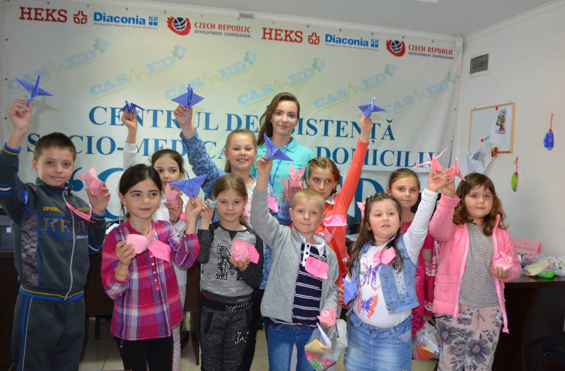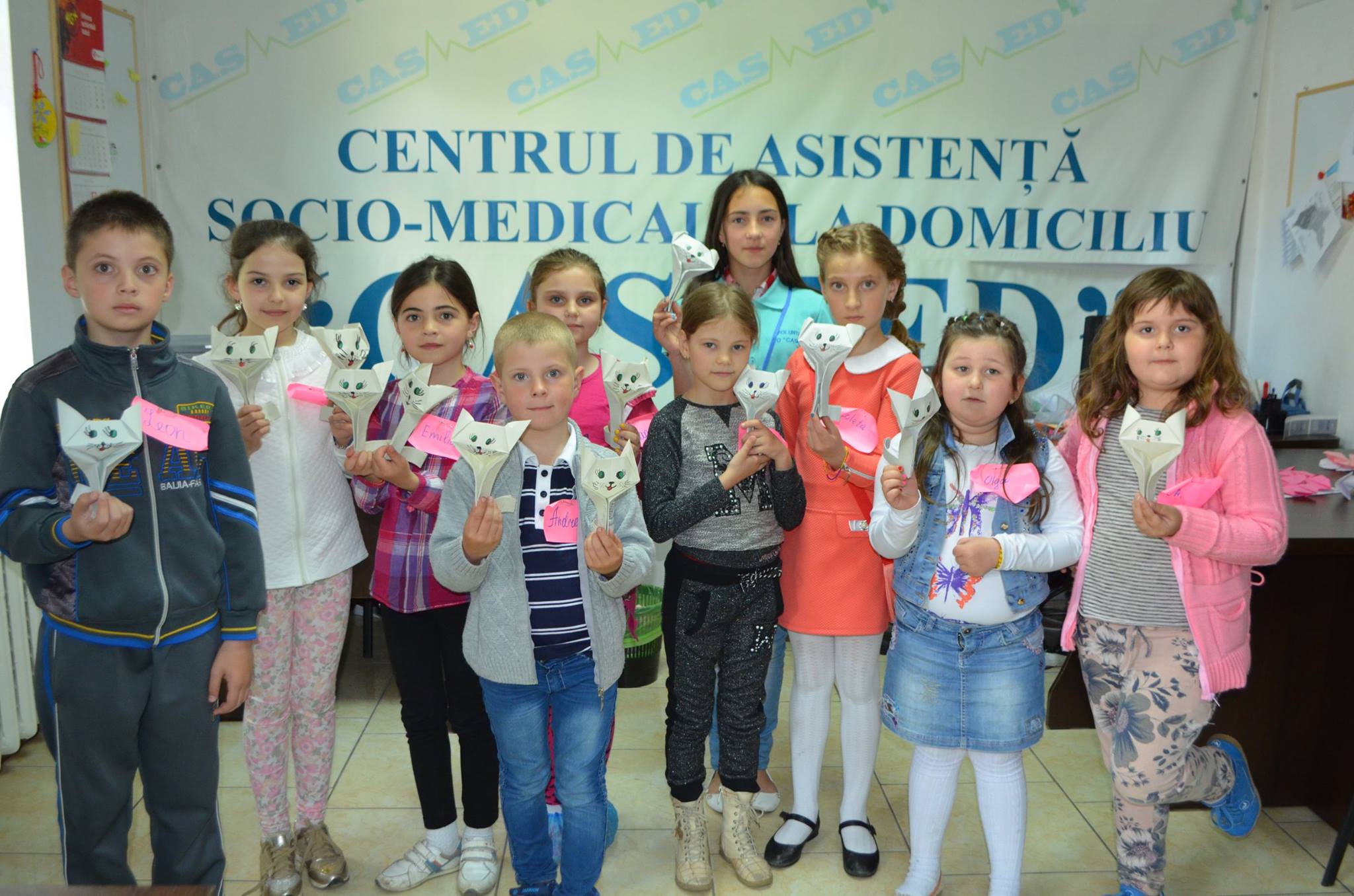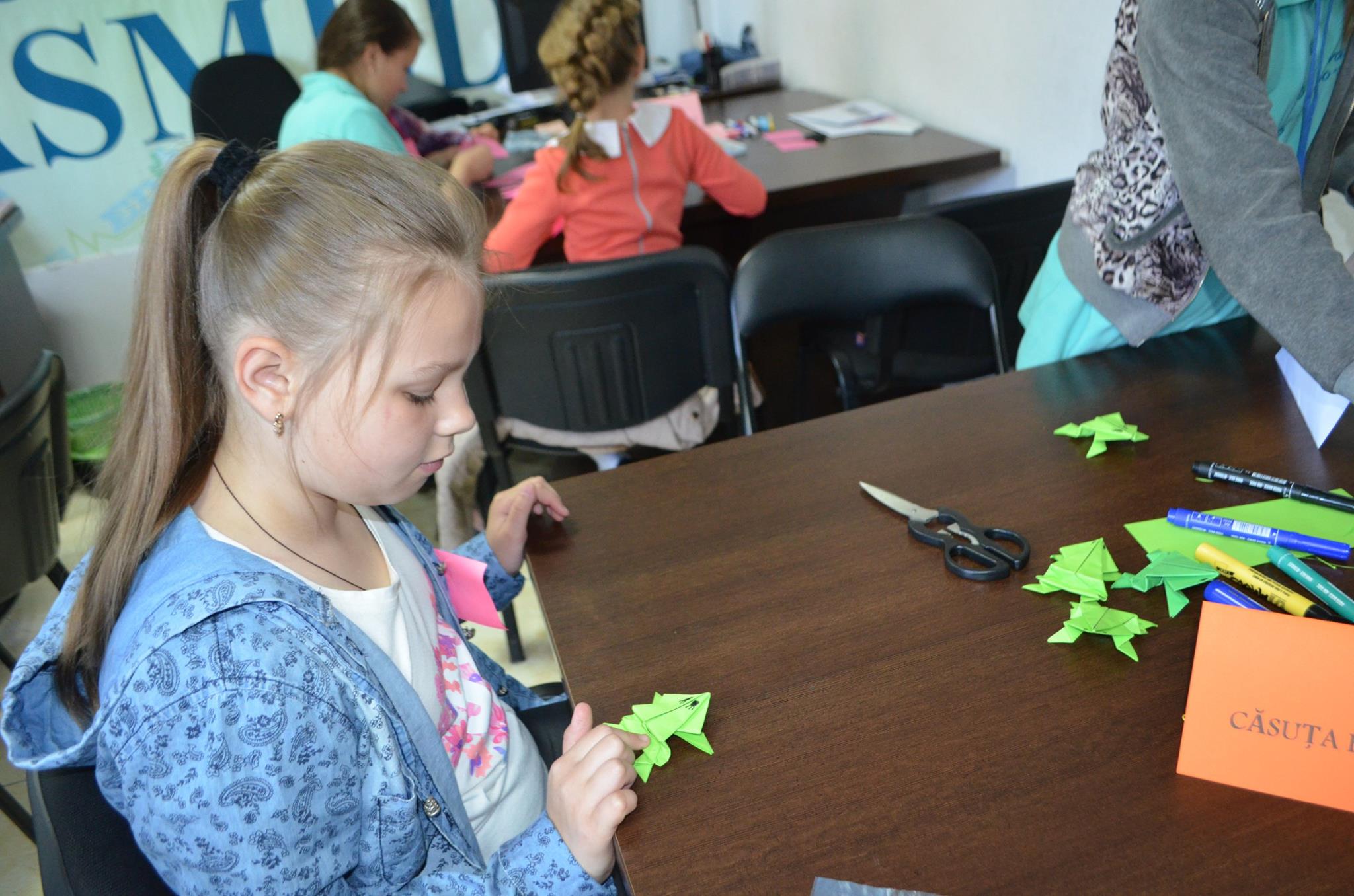 | 14.05.2016Pe data de 14 mai, voluntarii CASMED au organizat cel de-al treilea atelier de creație, de această dată având ca tematică principală Tehnica Origami. Pe parcursul a trei ore, copiii au învățat și practicat confecționarea de diferite animale prin Origami, au colorat și s-au jucat. Participanții au fost destul de iscusiți, reușind să–și surprindă părinții cu lucrările create.