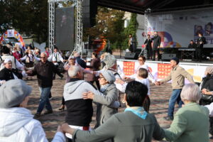 Un alt moment de tradiție a fost Dansul Covorului Festivalului, unde seniori și tineri au pășit împreună în dans, în semn de celebrare a legăturilor dintre generații și naționalități. La final, covorul – simbol al prieteniei și solidarității – a fost oferit delegației din Focșani, România, oraș înfrățit cu municipiul Bălți.