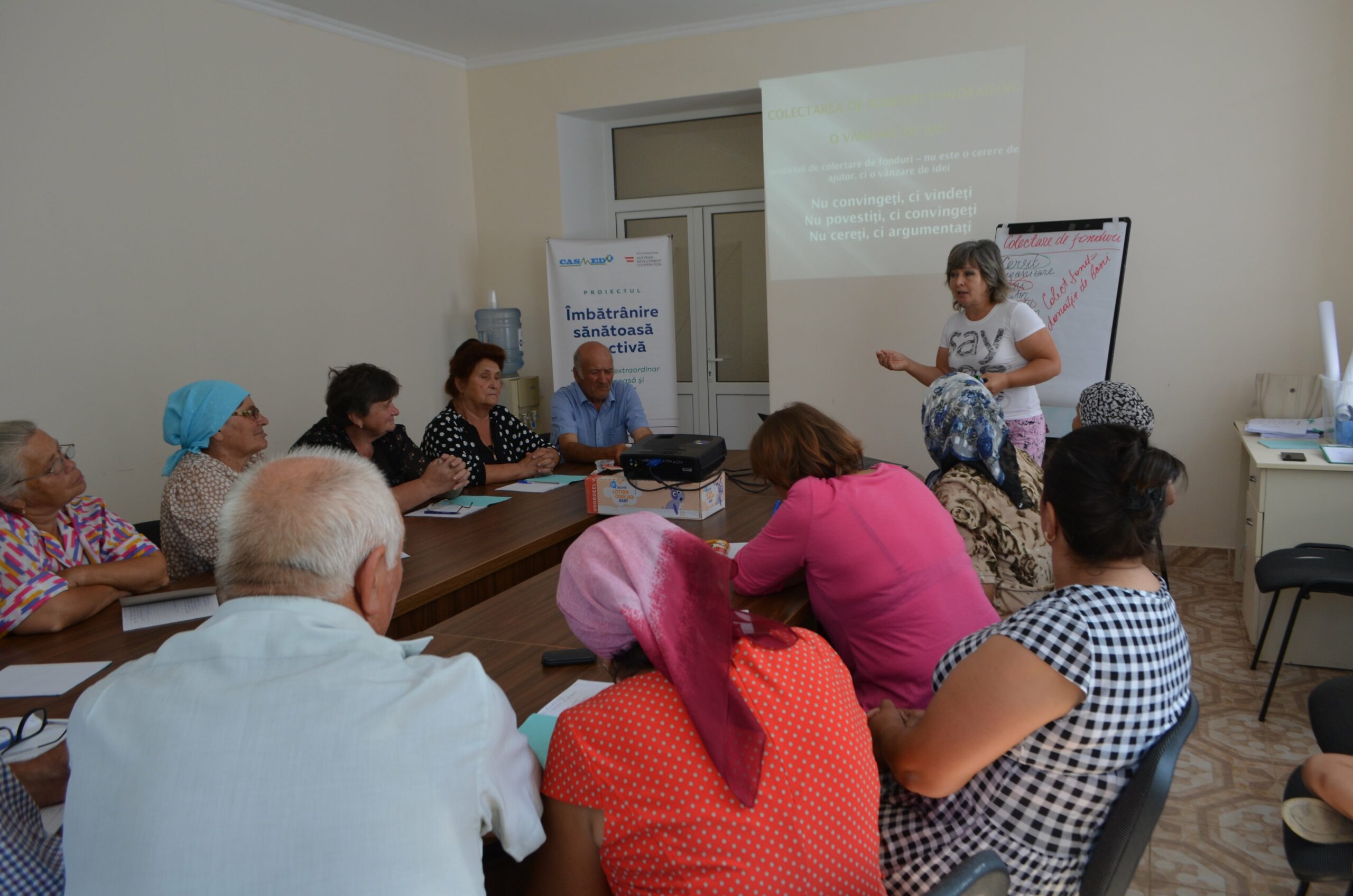 | 29.07.2019În perioada 22 – 27 iulie 2019, membrii grupurilor de seniori: „Busuioc de la Glinjeni”(s. Glinjeni r. Fălești); „Izvoreanca” (s. Izvoare, r. Fălești); „Țărăncuța” (s. Sărata-Veche, r. Fălești); ”Balatineanca” (s. Balatina, r. Glodeni); „Sofienii” (s. Sofia, r. Drochia) și „Vârsta de argint”, (s. Cajba, r. Glodeni) au participat la seminarul cu genericul „Colectarea de fonduri”.
