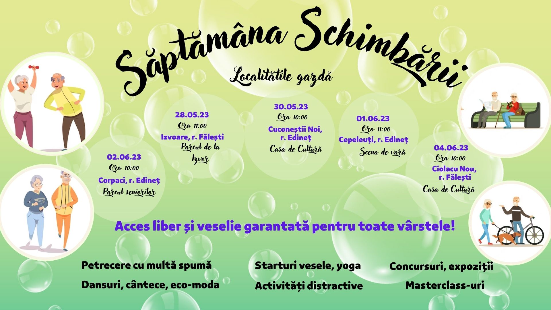 În perioada 28 mai — 4 iunie curent, Asociația Obștească „CASMED”, împreună cu localitățile partenere din raioanele Fălești și Edineț, organizează o serie de evenimente în contextul „Săptămânii Schimbării prin Comunitatea Prietenoasă Vârstei”.