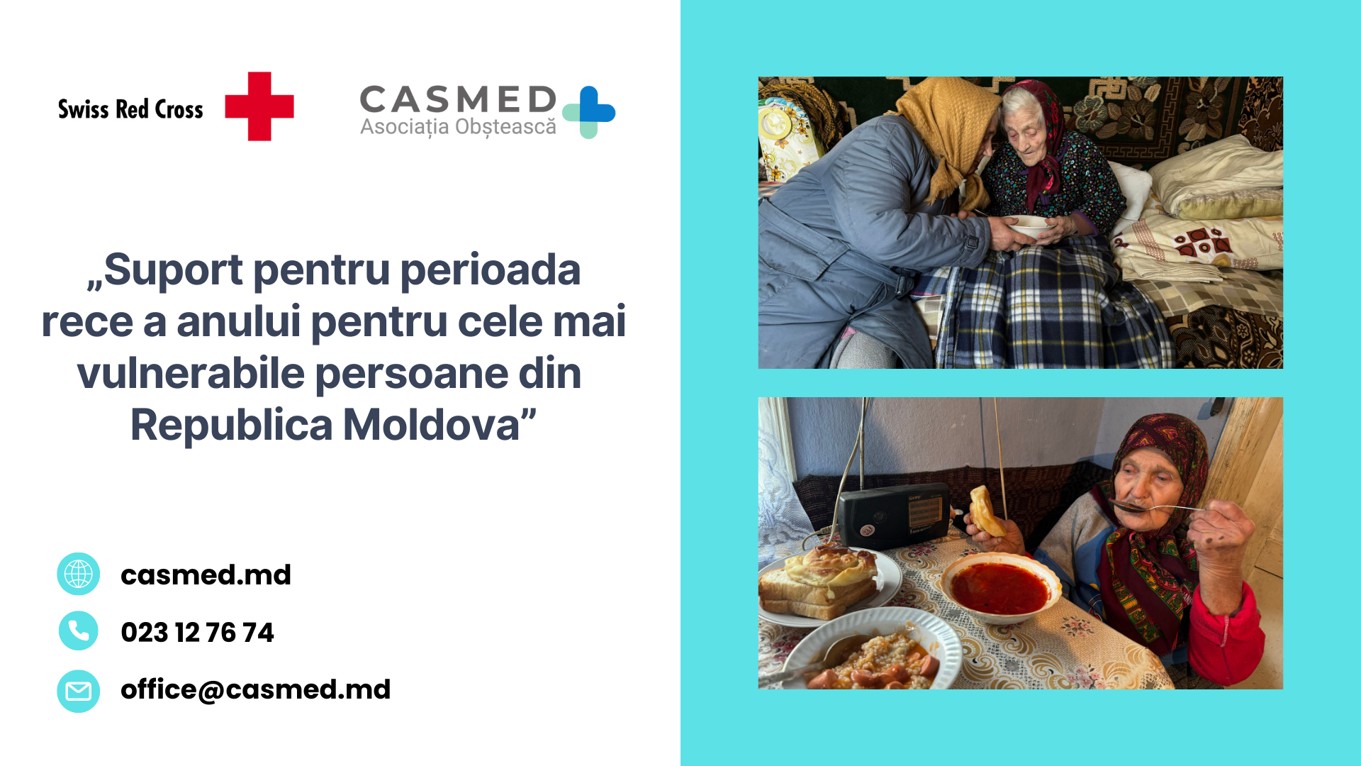 Serviciul de Cantină socială este dezvoltat în cadrul proiectului „Suport pentru perioada rece a anului pentru cele mai vulnerabile persoane din Republica. Moldova”, implementat de către AO „CASMED” cu susținerea financiară a Crucii Roșii din Elveția.