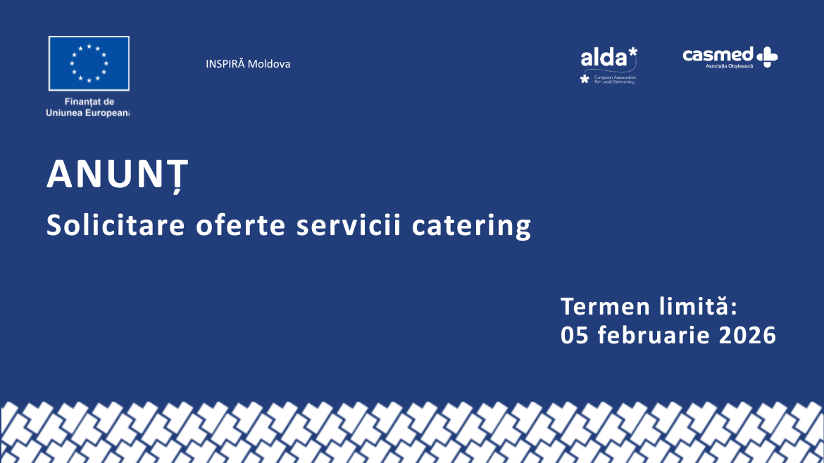 Asociația Obștească „CASMED” anunță lansarea concursului pentru selectarea unui prestator de servicii de catering în vederea organizării Forumului Civic Național, desfășurat în cadrul proiectului