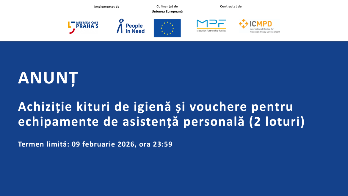 TERMEN EXTINS: ACHIZIȚIE KITURI DE IGIENĂ ȘI VOUCHERE PENTRU ECHIPAMENTE DE ASISTENȚĂ PERSONALĂ (2 LOTURI)